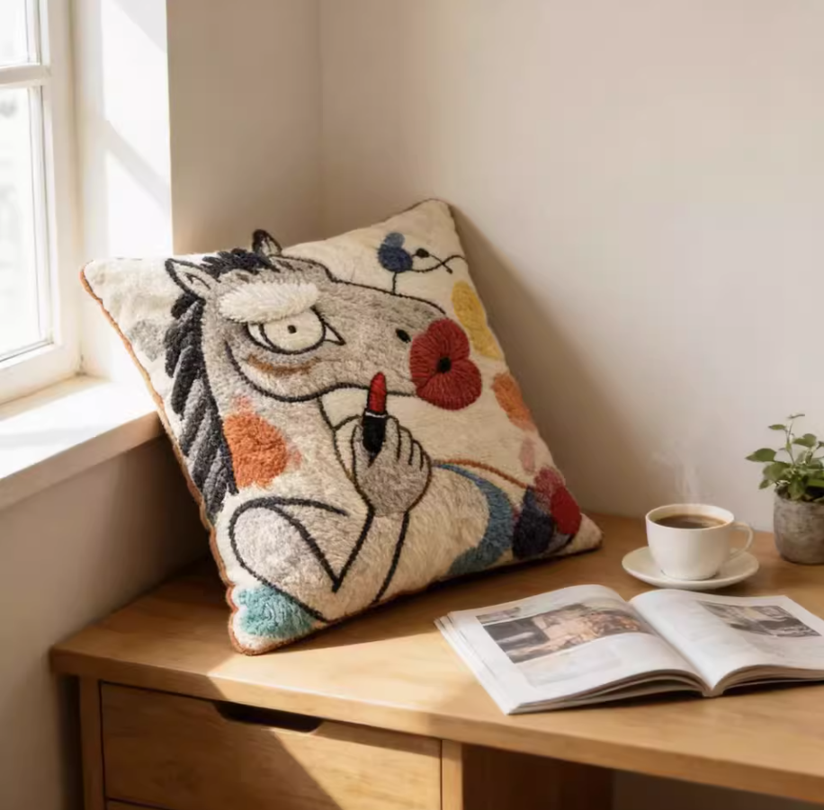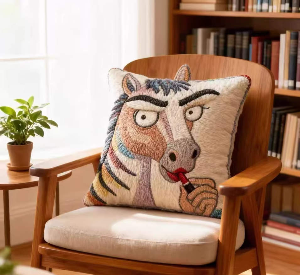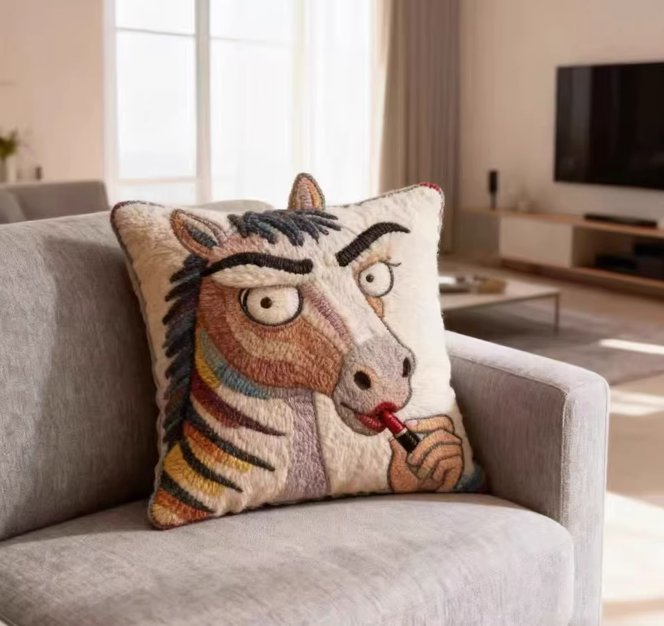 Funny Plush Embroidery Horse Sofa Pillow, Cute Horse Throw Pillow, Animal Art Cushion, Western Farm Decor, Vintage Style Home Pillow