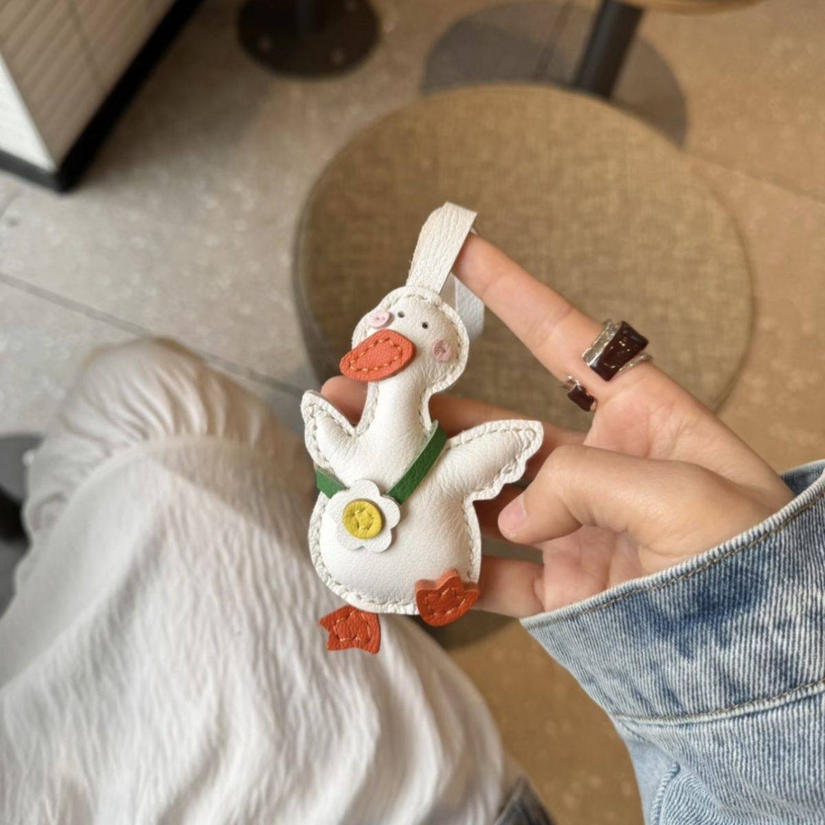 Handmade Leather Happy Duck Bag Charm, Purse Accessory, Christmas gifts