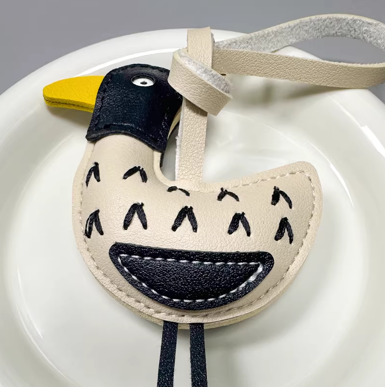 • Playful Duck Leather Pendant Keychain Crafted from premium soft PU leather with meticulous hand-stitching, this charming duck-shaped accessory boasts an irresistibly adorable design and a luxuriously smooth texture. Paired with stylish metal hardware, it combines durability with elegance. Whether adorning your bag, keys, or presented as a heartfelt gift, it infuses everyday moments with warmth and playful delight.