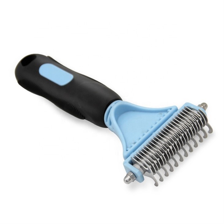 Rubber Non-slip Handle Double Sided Pet Grooming Comb Cat Dog Dematting Comb