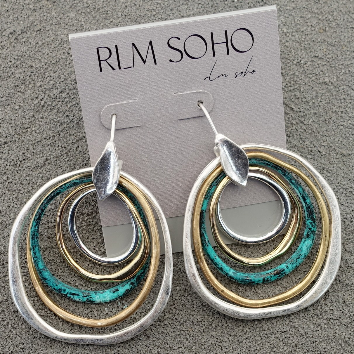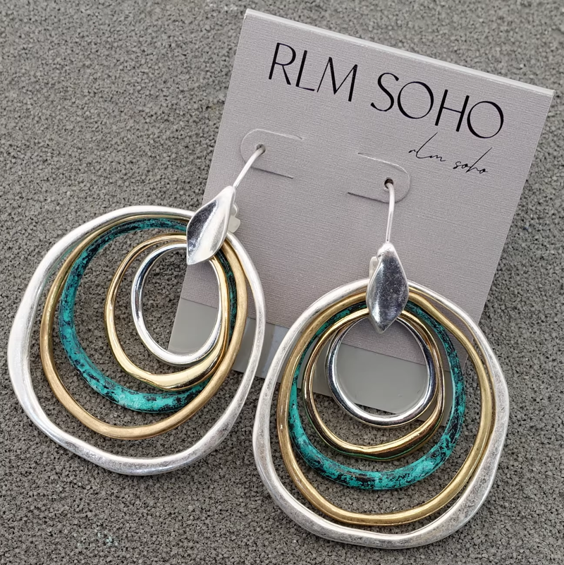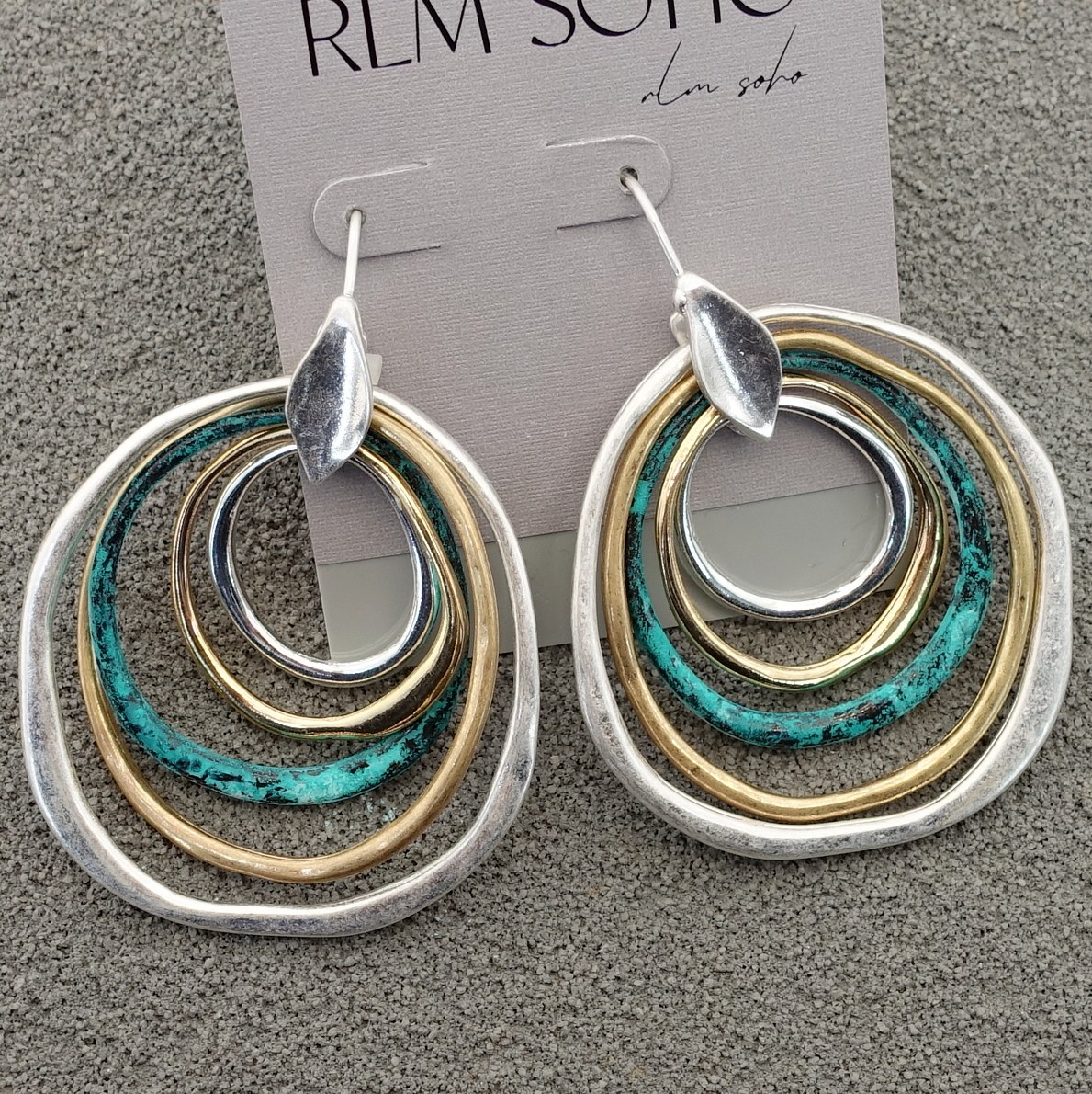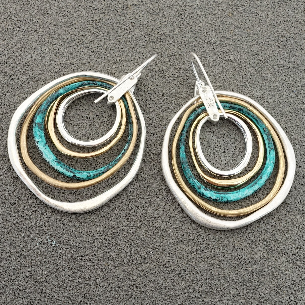 Returns: 7 days money back guaratee,buyer pays return shippingThese mixed metal hoops bring together different tones and textures in a way that feels balanced and natural. The mint patina adds a fresh pop of color, while the gold filled hoops introduce warmth and the sterling silver grounds the design with a soft, cool tone.